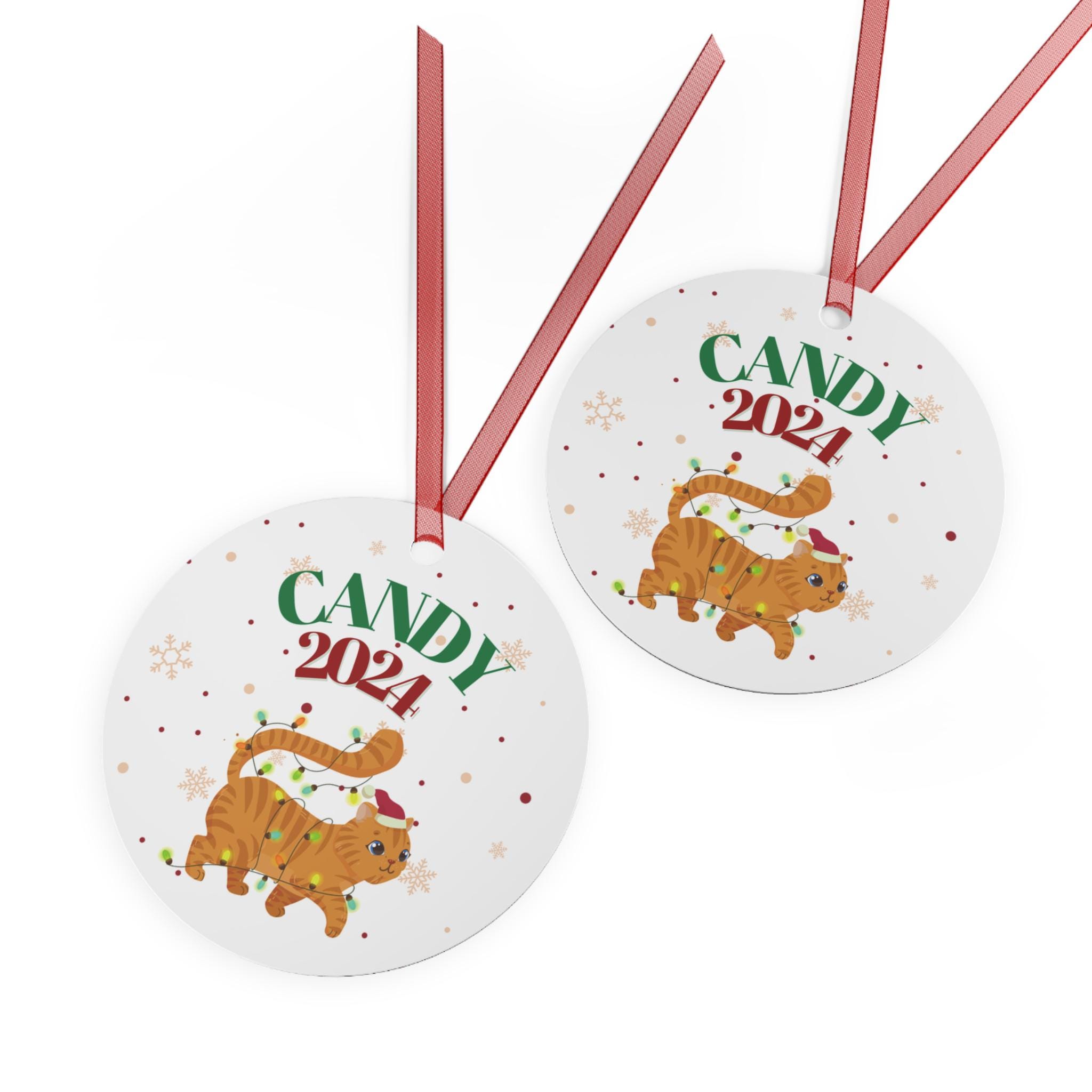 Personalized Double-Sided Metal Christmas Ornament for Cat Moms and Dads