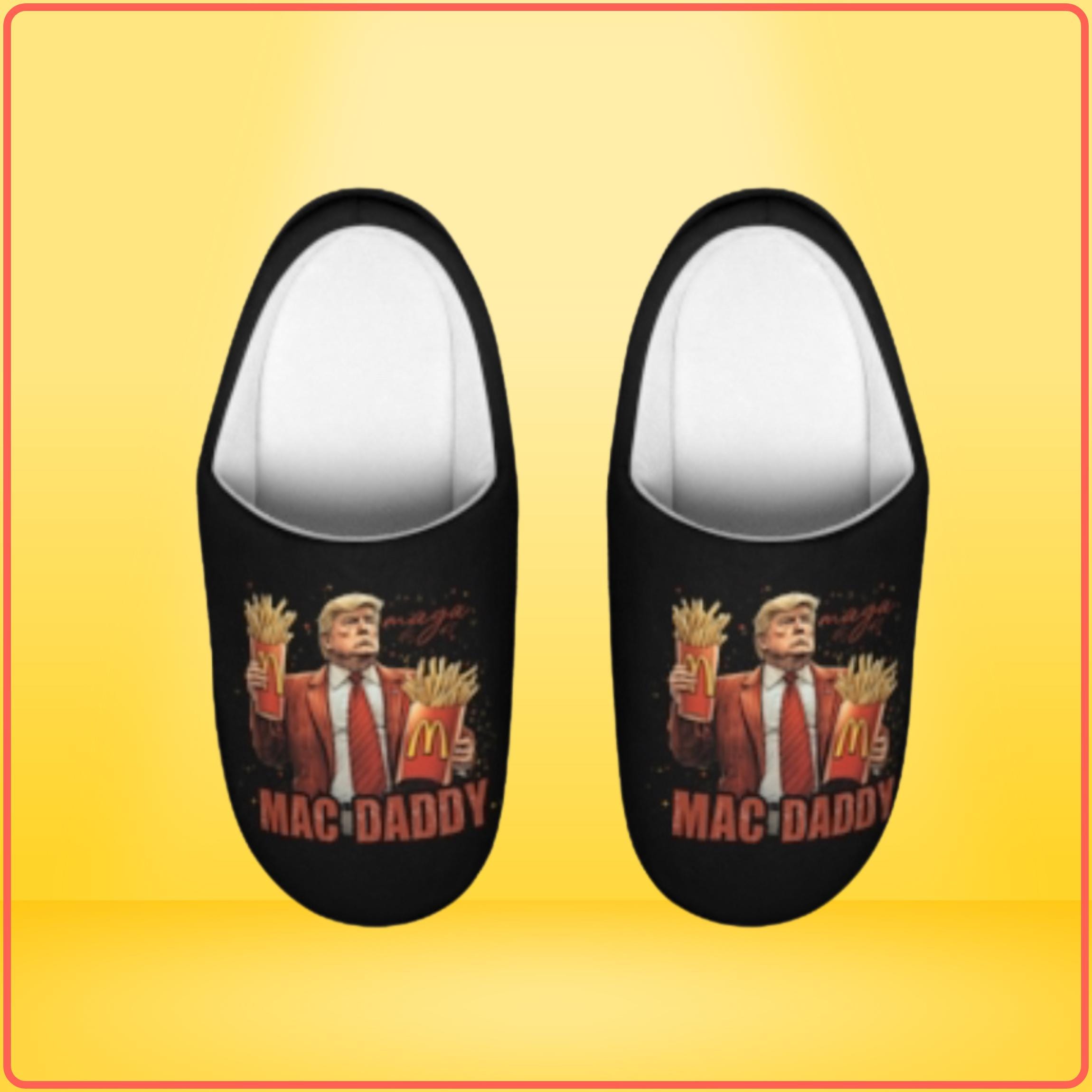 Cozy up with these MAC daddy trump with fries Men's Slippers, perfect for the holiday season. Made of flannel fleece fabric for ultimate comfort, with an anti-slip textured outsole for durability. These festive slip-ons make great gift ideas for anyone in sizes 7-14 (USA).